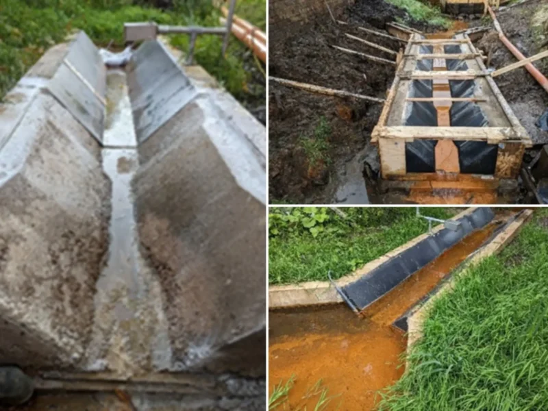 - An inclined gauge board was also included for visual confirmation of flow depths.